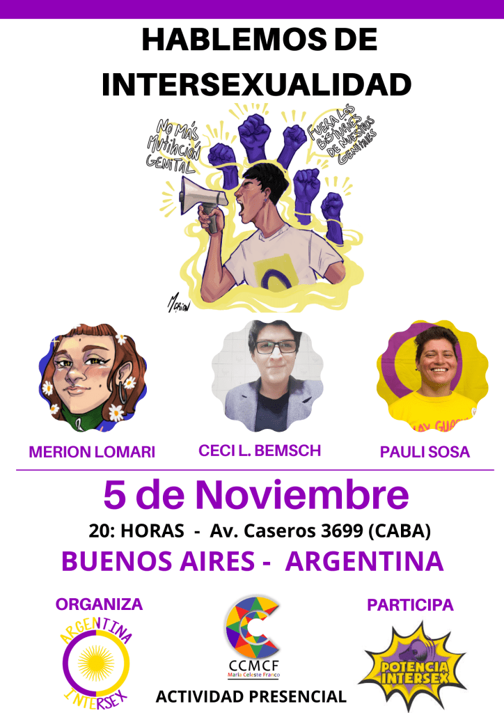 Merion Lomari y Ceci Lopez Bemsch, Integrantes de ARGENTINA INTERSEX y Pauli Sosa, activista intersex e integrante de la organización POTENCIA INTERSEX