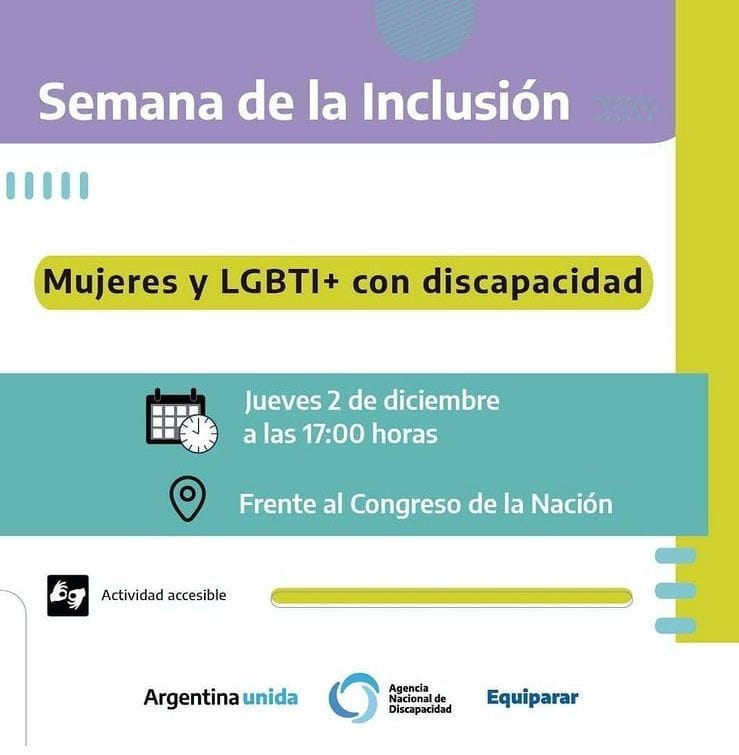 El 2 de diciembre del 2021, Merion Lomari, activista Disca – Intersex, integrante de la organización Argentina Intersex fue invitada para hablar en la radio abierta «MUJERES LGBTI+ CON DISCAPACIDAD» en el marco del «Dia Internacional de las personas con discapacidad». Esta actividad tuvo lugar frente al Congreso de la Nacion Argentina y fue organizada por ARGENTINA UNIDAD, EQUIPARAR y la AGENCIA NACIONAL DE DISCAPACIDAD.