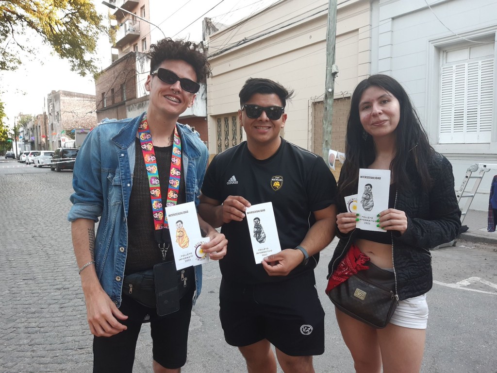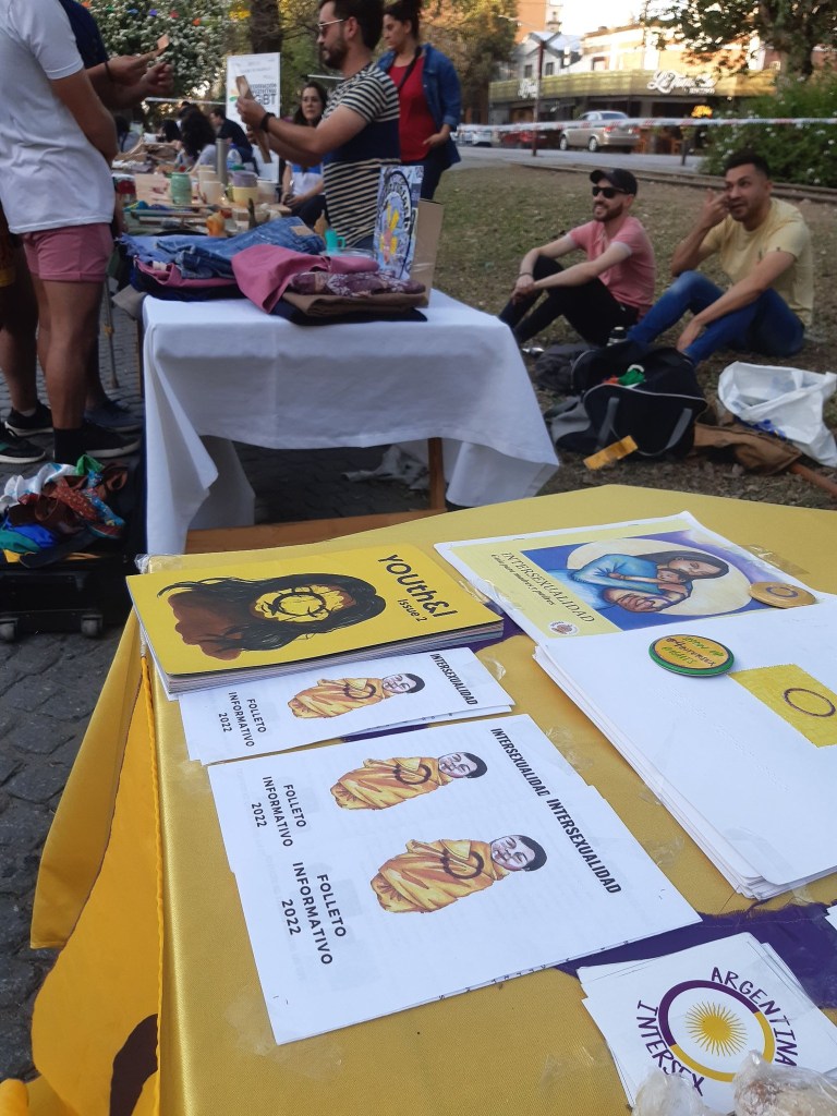 Llevamos nuestra mesa con materiales informativos sobre intersexualidad y hablando con las personas de las cosas que lleva adelante el activismo intersexual en el mundo.