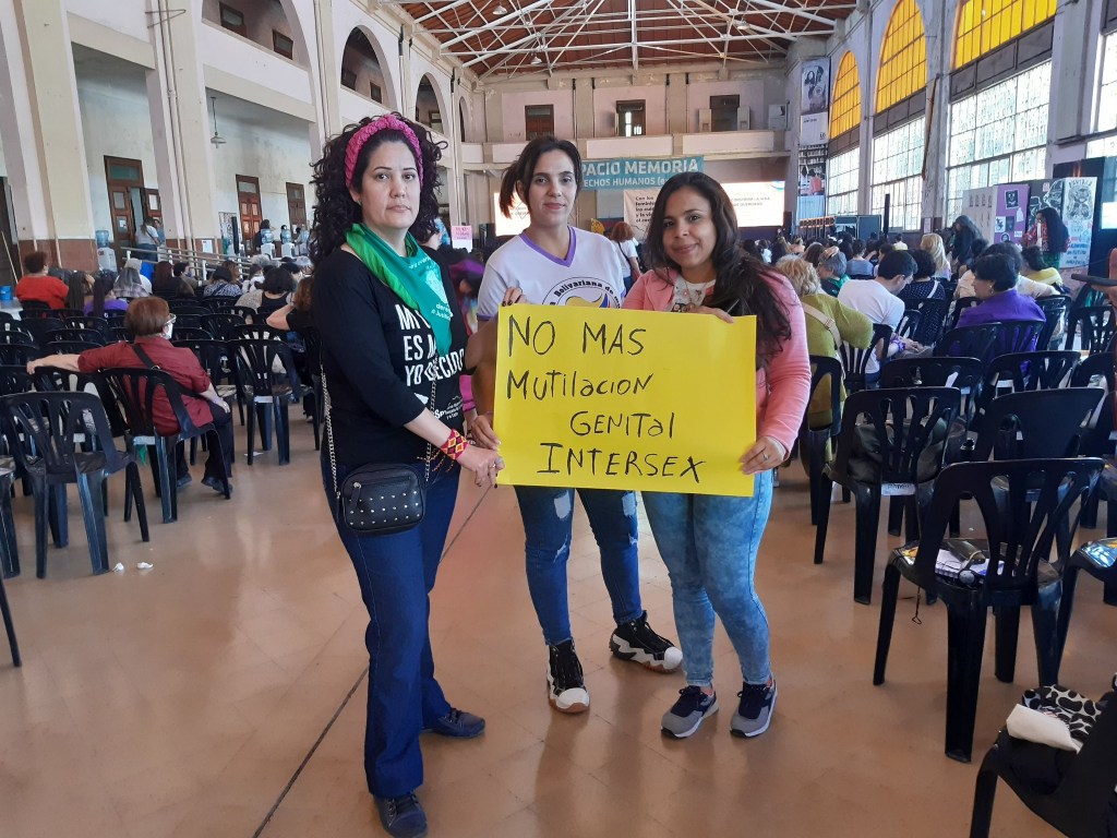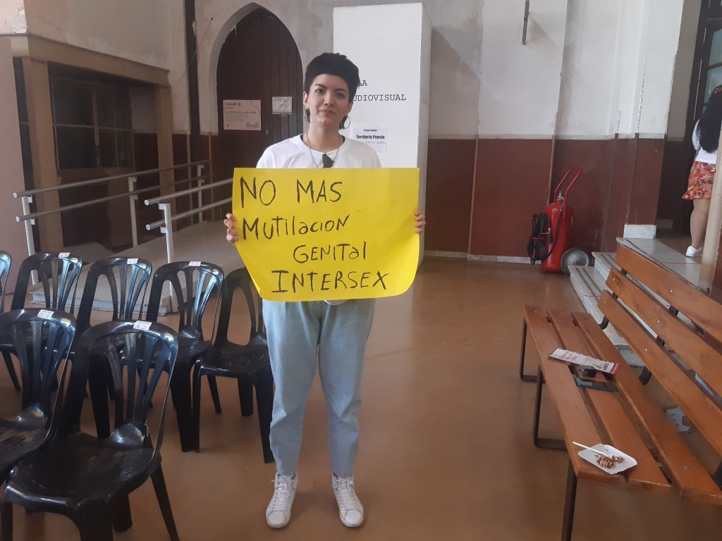En el evento se repartieron folletos informativos sobre intersexualidad, calcomanias de la organizacion e invitamos a las personas y organizaciones a sostener un cartel que dice «No mas mutilacion Genital Intersexual».