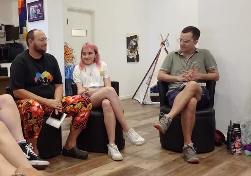 El encuentro se desarrollo en las instalaciones de AMI (calle Vieytes 209) y contó con la participación de Juane, activista intersex de Mar del Plata e integrante de AMI, Merion Lomari actuvista Disca – Intersex de Buenos Aires e integrante de Argentina Intersex y Ceci Lopez Bemsch activista intersex de Tucuman e integrante de Argentina Intersex donde compartieron sus experiencias de vida y hablaron sobre el «proyecto de Ley de Protección Integral de las Características Sexuales».